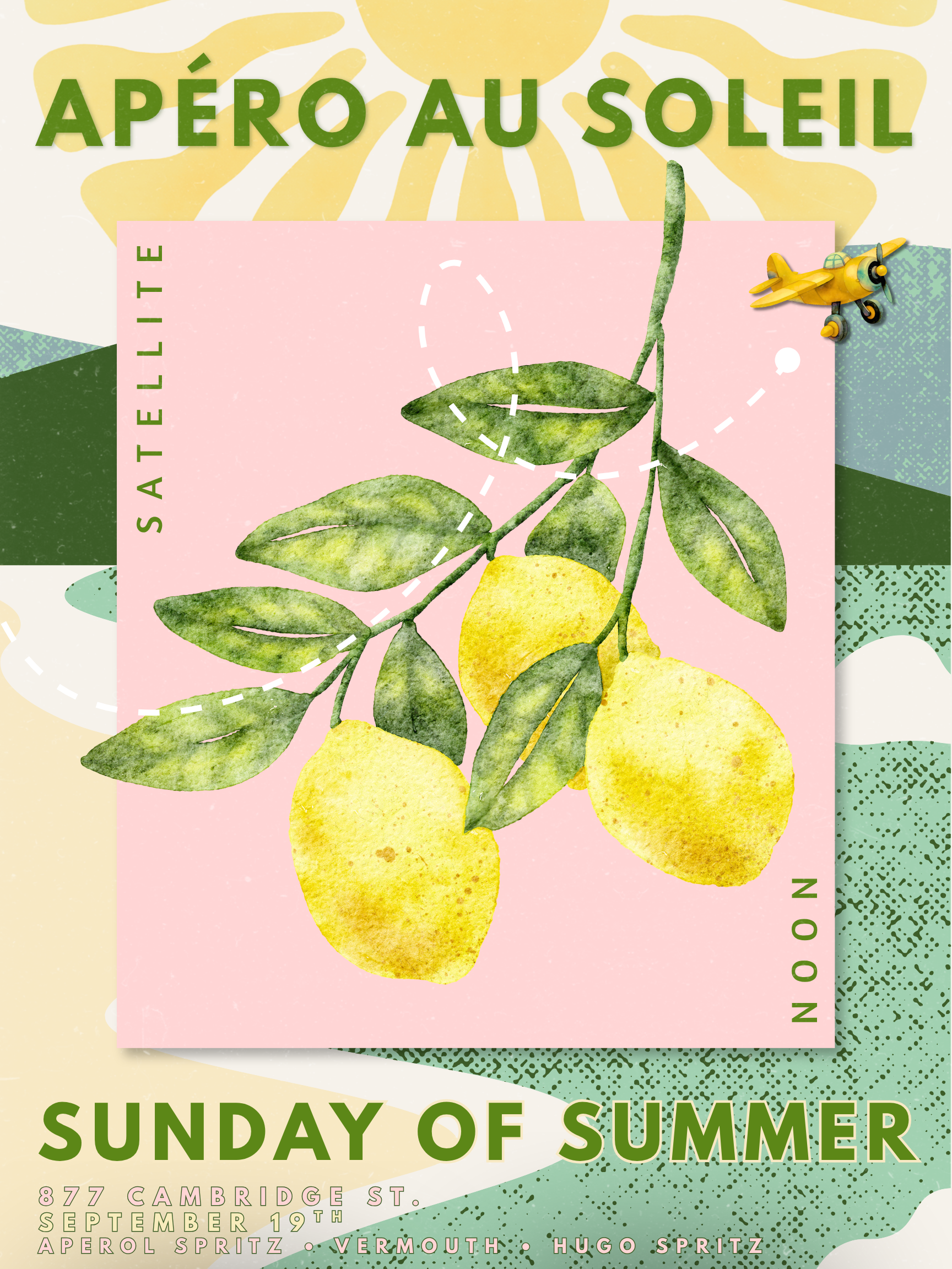 Apéro au Soleil: Sunday of Summer Saturday, September 19, 2026 12:00 PM 5:00 PM Satellite 877 Cambridge Street Cambridge, MA, 02141 United States (map) Google Calendar ICS